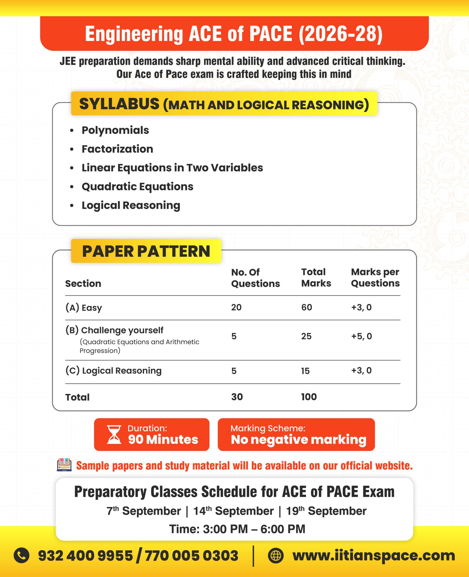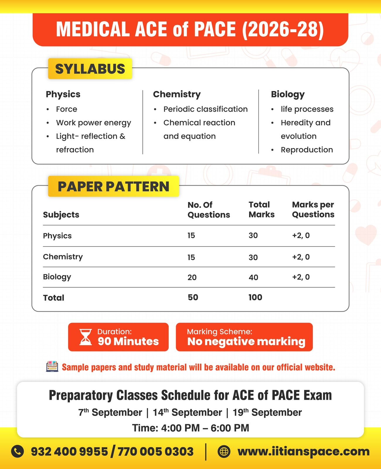 ACE of PACE is a national-level scholarship and entrance exam conducted by PACE IIT & Medical for identifying India’s most dedicated NEET aspirants. Designed for students from Class 7 to Class 11, this exam helps medical aspirants secure merit-based scholarships for NEET Foundation Courses and full-fledged NEET coaching programs.